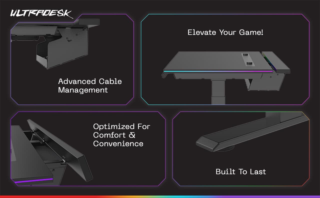Level up your setup with a dynamic gaming table featuring height adjustability, immersive RGB lighting, and flawless cable management for peak performance and style!